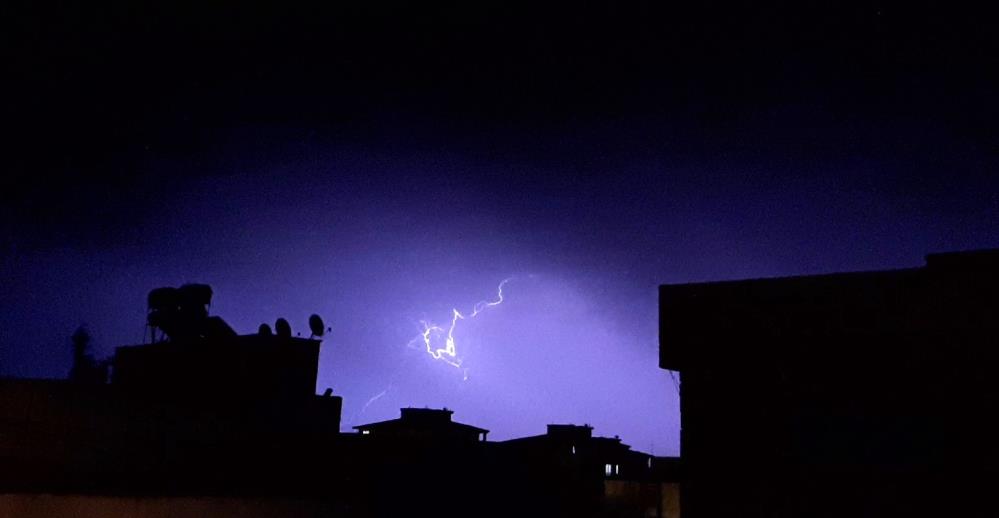 Meteoroloji Genel Müdürlüğünün kuvvetli yağış uyarısı yaptığı Adıyaman’da geceyi çakan şimşekler aydınlattı.