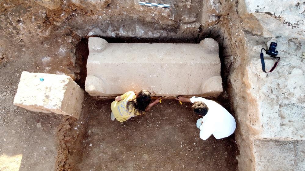 Adıyaman’daki Perre Antik Kent'in mozaikli alanında yapılan kazılarda içerisinde 4 iskeletin olduğu bin 800 yıllık sanduka mezar bulundu.