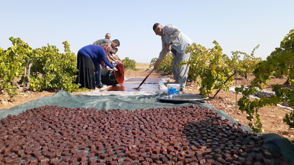 Adıyaman'da bağcılık yapan çiftçiler bağbozumunda üzümleri toplayarak, kış aylarında sofraların vazgeçilmezi ürünlere dönüştürüyor.