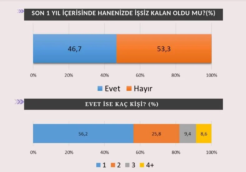 Yüzde 74,3'ünün yükseköğretim mezunu olduğu katılımcıların, yüzde 25'i hiçbir sosyal güvenceye sahip olmadığını, yüzde 9.6'sı hanesinde gelir getiren bir işte çalışan hiç kimse bulunmadığını belirtti. Katılımcıların yüzde 24.8'inin aylık gelirinin 11 bin 400 TL’nin altında olduğu belirtildi. Araştırmaya göre, son bir yılda hanelerinde işsiz kalanlar olduğunu söyleyenlerin oranı yüzde 46,7 oldu.