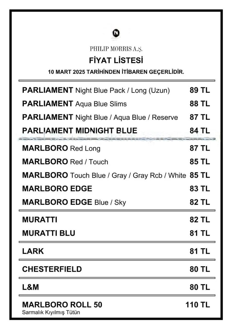 Dündar, Philip Morris sigara grubuna zam geldiğini açıkladı. Yeni zamlı fiyat listesinin ardından grubun en ucuz sigarası 80 TL'ye, en pahalı sigarası ise 110 TL'ye çıktı.