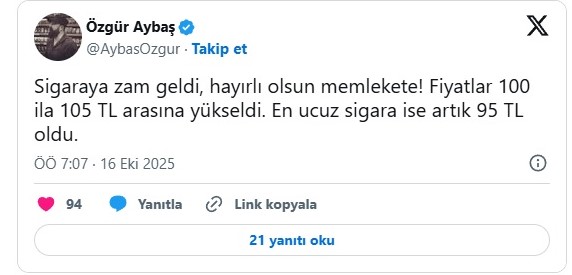 Sigaraya bir zam daha: En ucuz sigara 95 lira