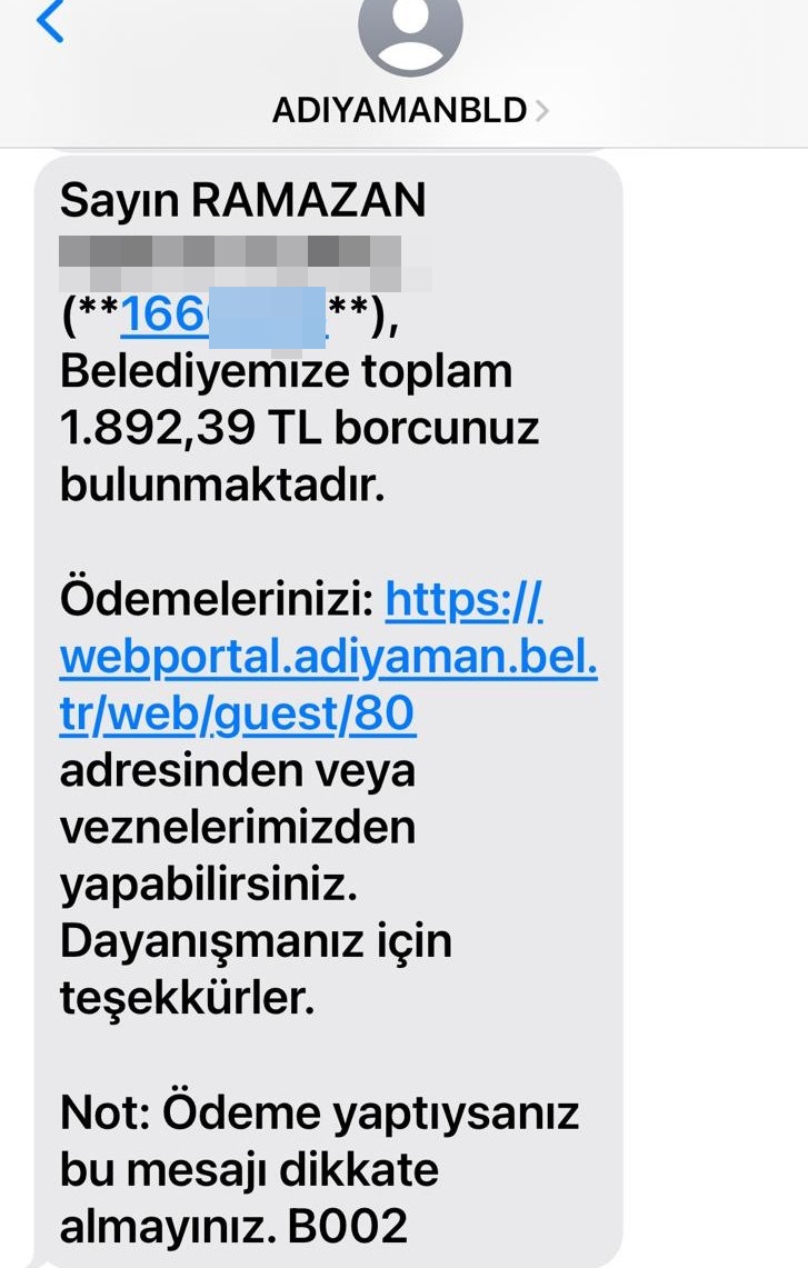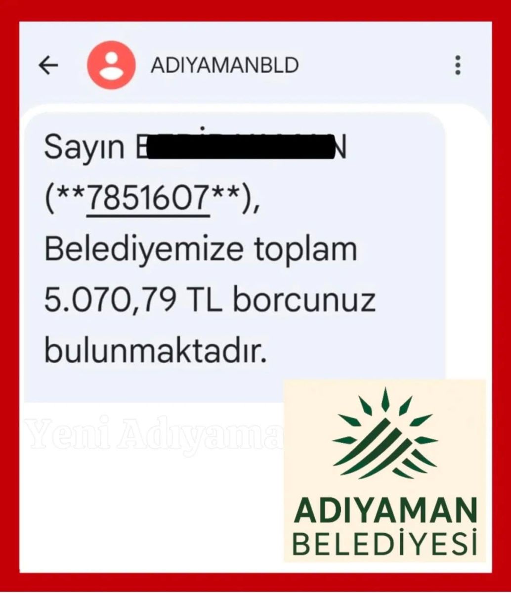 Adıyaman Belediyesi tarafından, depremden bu yana tahsil edilmeyen emlak, su ve çevre temizlik vergisi gibi borçlar nedeniyle mükelleflere kısa mesajla bildirim yapılması, kentte büyük tepki topladı.