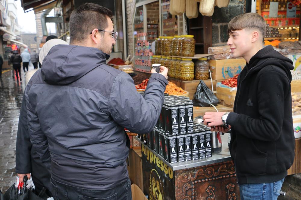 ''Turistler çok beğeniyor, önem gösteriyorlar. Tadına baktıktan sonra 1 tane alacakları yerde 3-4 tane birden alıyorlar. Tadına bakmaları yeterli oluyor satın almaları için. Sürekli ikramlarda bulunuyoruz. Hava güzel olduğu zaman 20-25 fincan kahve ikram ediyoruz gelen-geçen turistlere ama hava bu şekilde yağmurlu ya da soğuk olduğunda 8 ile 10 arası fincan ikram ediyoruz. 200 gramı 200 liradır. 2 adet alırsa 350 lira oluyor. Çok satılıyor kahvelerimiz. Vatandaşlarda çok beğeniyorlar her geldiklerinde mutlaka alıyorlar.'' İfadelerini kullandı. İHA
