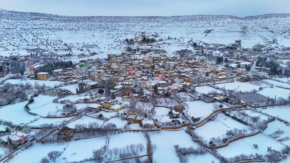 Mardin'in Nusaybin ilçesine bağlı Akarsu Mahallesi, karla kaplanan damları ve doğal dokusuyla görenleri kendine hayran bıraktı.