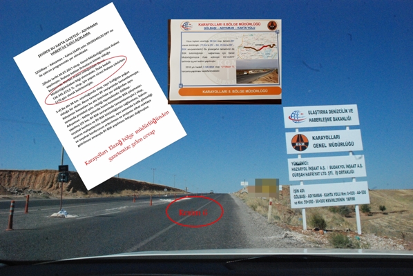 - Gölbaşı-Adıyaman-Kahta karayolu :2019 sonu bitirilmesi lazımdı,sadece Kahta küçük sanayi kavşağında bin 700 metrelik yol yapıldı.Ayrıca hangi ihtiyaçtan dolayı bu yol yeniden ihale edildi bilmiyoruz. 136 milyon TL Adıyaman’ın çok daha acil ihtiyaçları (işsizlik gibi) için başka yatırımlarda kullanılabilirdi.(Resim 6)
