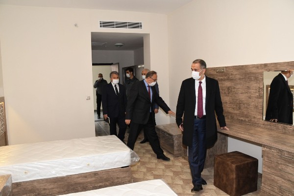 Vali Mahmut Çuhadar, sahip olduğu tüm sosyal donatılarıyla muazzam bir merkez olarak tasarlanıp modern bir mimariyle inşa edilen ve yapım çalışmalarında sona gelinerek, iç tefrişat çalışmalarına başlanan hizmetiçi eğitim enstitüsünde incelemelerde bulunarak merkezin son durumu hakkında İl Milli Eğitim Müdürü Ahmet Alagöz’den bilgi aldı.