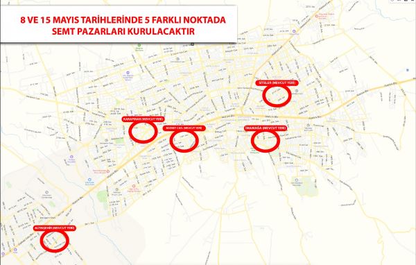 8 Mayıs ve 15 Mayıs tarihlerinde Adıyaman’da kurulacak semt pazarları için 5 farklı bölgede belirlenen noktalar şöyle: