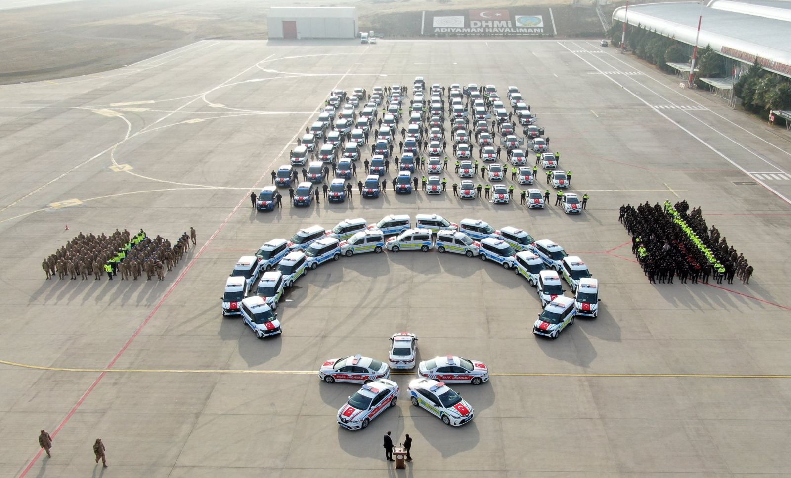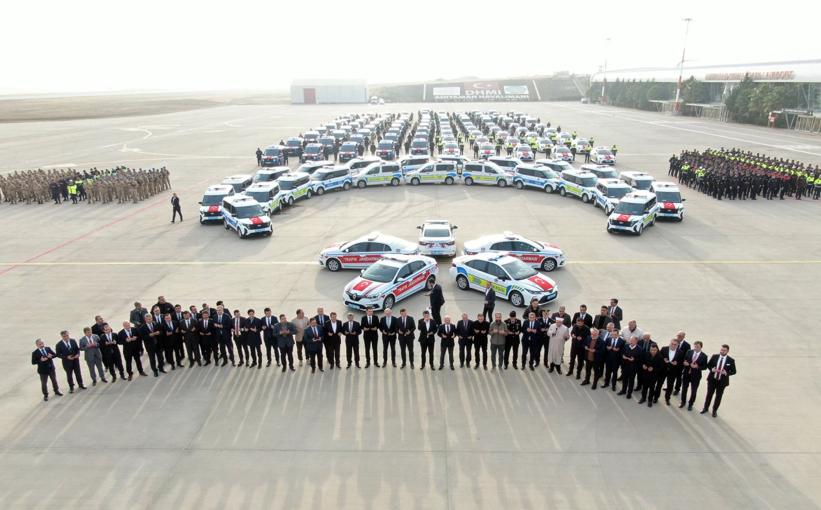 Emniyet ve jandarma teşkilatına tahsis edilen 116 yeni hizmet aracı, Adıyaman Havalimanı’nda düzenlenen törenle göreve başladı.