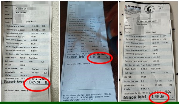 Vatandaşların paylaştığı doğalgaz faturalarında tutarların 4 bin, 6 bin hatta 8 bin lirayı aştığı görülüyor. Üstelik bu faturaların büyük kısmı, evde kısıtlı kullanım yapılmasına rağmen geliyor. Kombiyi günde birkaç saat yakabildiğini söyleyen vatandaşlar, buna rağmen faturaların katlandığını belirtiyor.